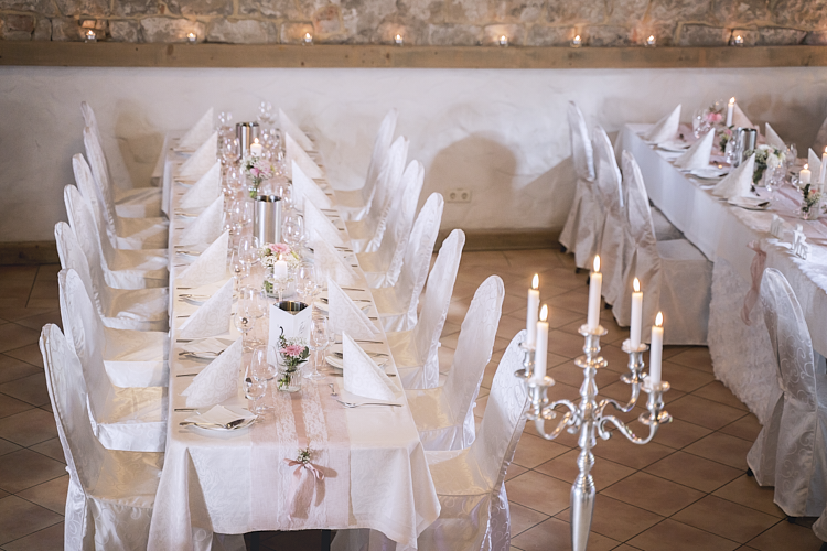 Zelebrieren Sie Ihr ganz persönliches Event im Großen Saal mit stilvoll eingedeckter Tafel.